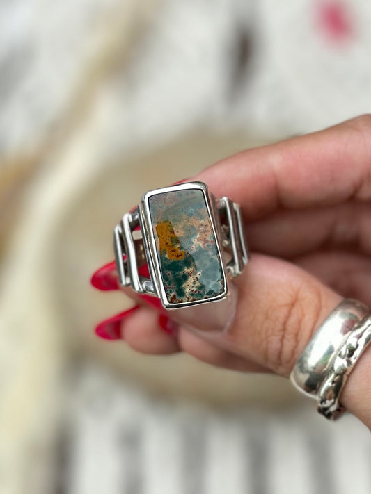 Chunky "Ladder Band" Ring- Natural Solid Boulder Opal - Sterling Silver .925 SIZE 5