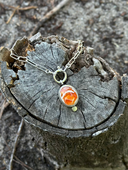Carmen Necklace - Mexican Fire Opal - Sterling Silver .925