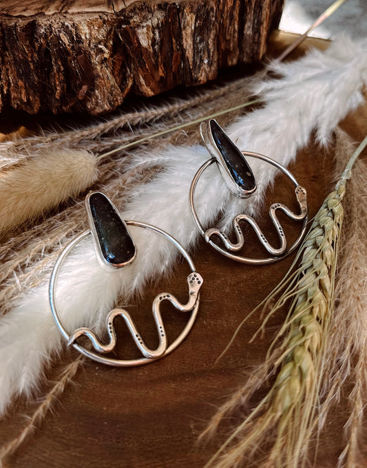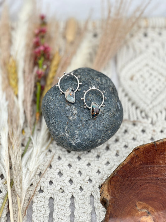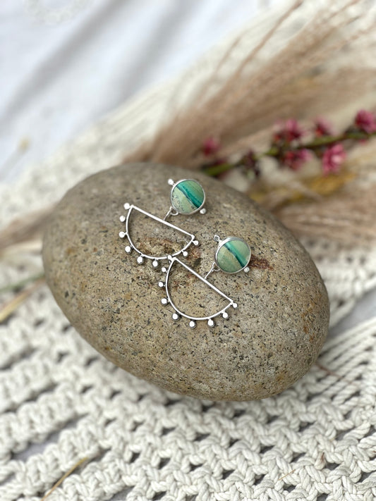 Meia Lua Earrings - Montana Agate - Sterling Silver .925