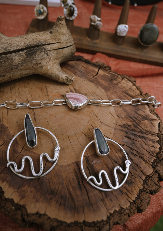 Rhodochrosite Handmade Link Chain Bracelete - Sterling Silver .925