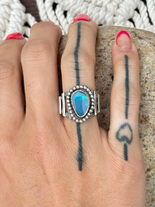 Black Australian Opal - Sterling Silver SIZE 9