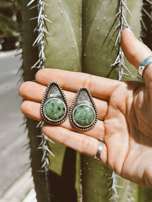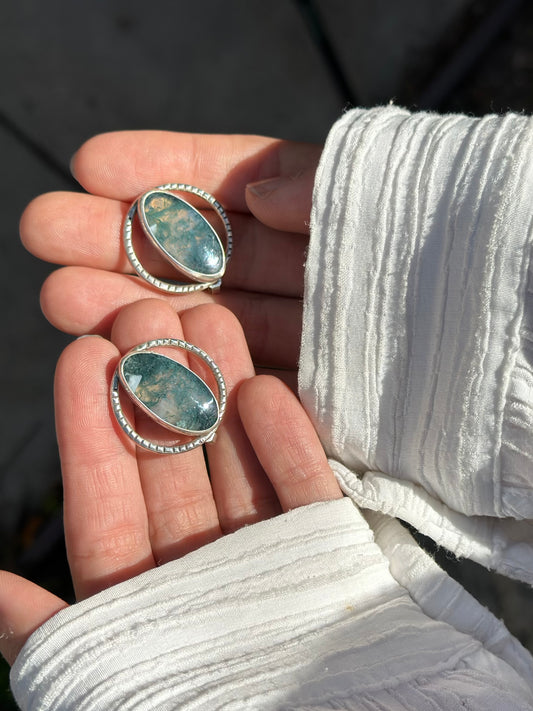 Elizabeth Earrings - Moss Agate - Sterling Silver .925
