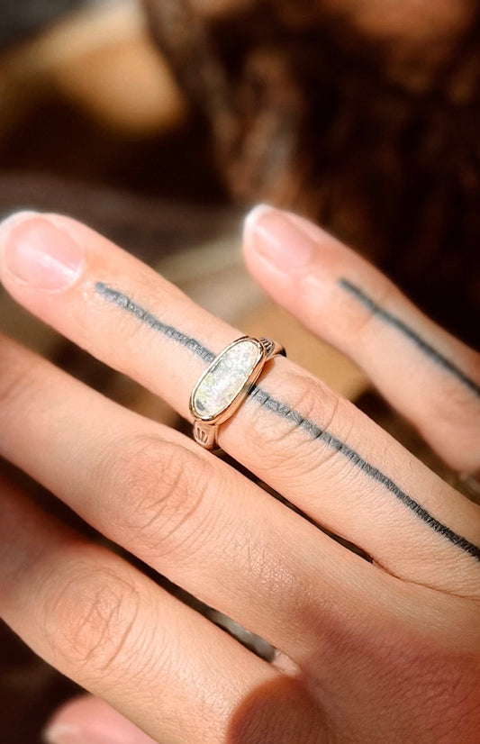 Australian Opal Sterling Silver & 14k Gold Filled Ring SIZE 5 3/4