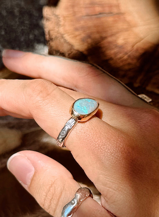 Australian Opal Sterling Silver & 14k Gold Filled Ring SIZE 9