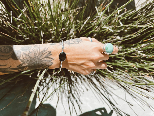 Turquoise Hand-stamped Cuff Sterling Silver .925