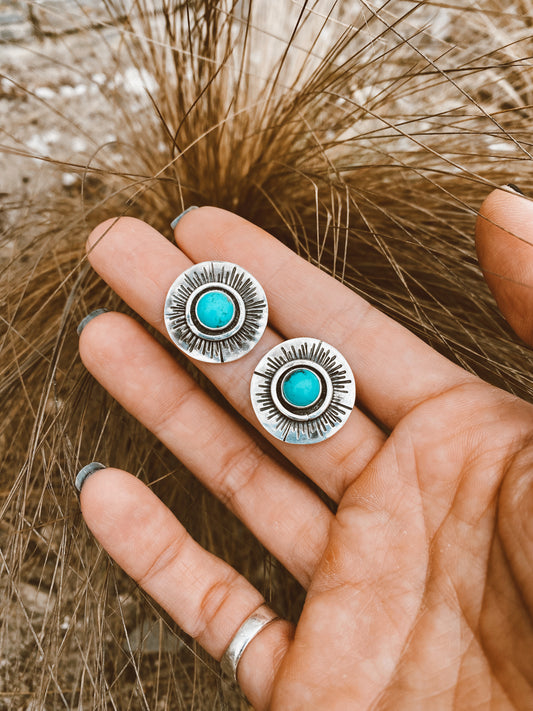 Here Comes The Sun Stud Earrings - Kingman Turquoise .925 Sterling Silver