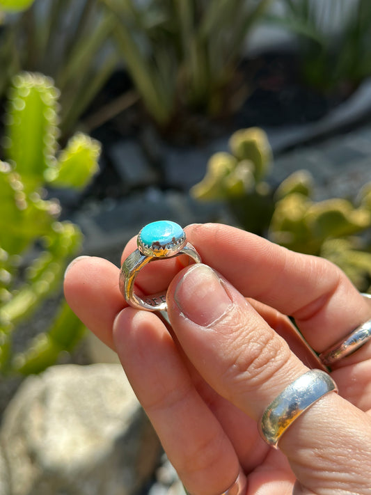 New Lander Turquoise Sterling Silver & 14k Gold Filled Ring SIZE 8