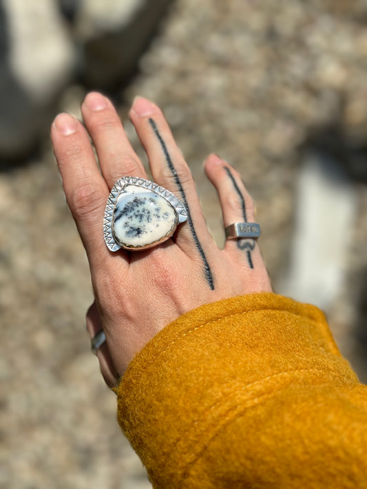 Dendritic Opal (Moss Opal) Ring - Sterling Silver 925 SIZE 8