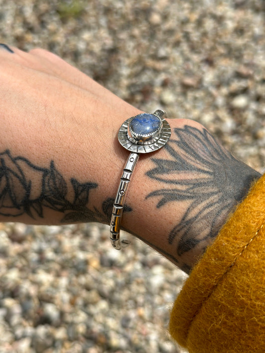 Sodalite Hand-stamped Sterling Silver Cuff .925