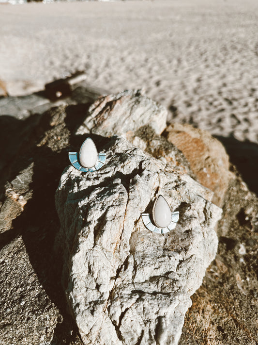 Half Circle Snow Quartz Earrings - .925 Sterling Silver