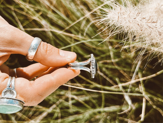 Tribal Turquoise Ring - Sterling Silver .925 SIZE 4