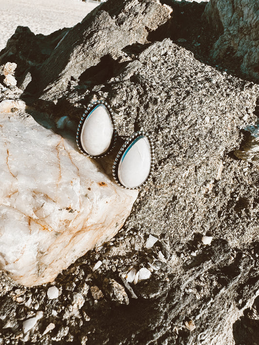 Snow Quartz Teardrop Earrings - .925 Sterling Silver