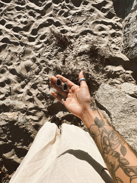 Black Obsidian Teardrop Earrings - .925 Sterling Silver