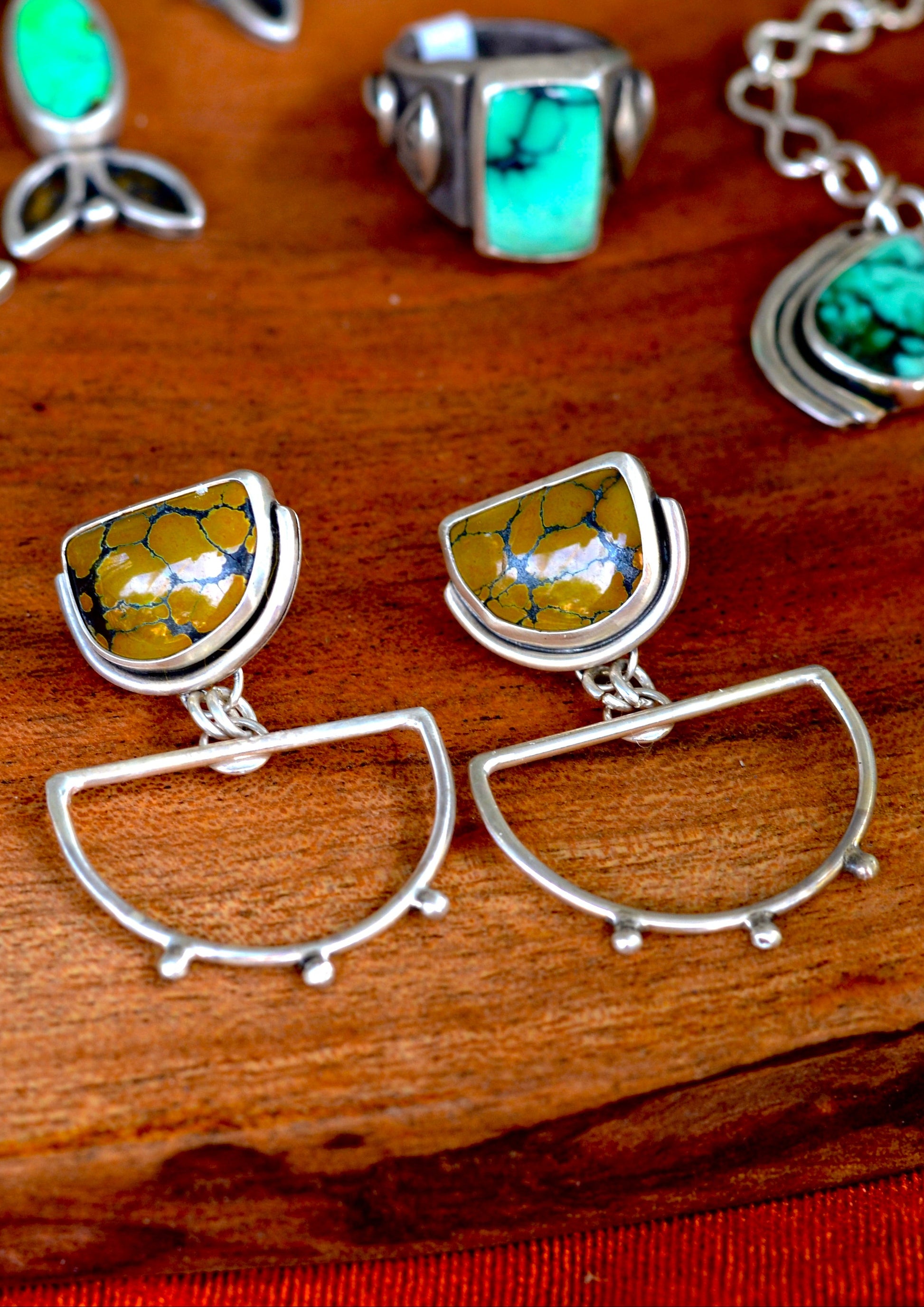 It has these beautiful Hubei Turquoises, hand-stamped with my Terra logo on the back, and I just love how the half moon shape looks with this stone. Love love love!